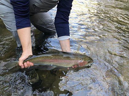 She emerged from upstream at one point, quietly and almost cautiously for fear of waking from a dream, stating that she… had netted the largest trout that she had ever caught. Twice in the same day. And, she was amazed that she had fooled it on a size 18 fuzzy nymph of some sort and that she had managed to bring it to net on 6x tippet. That would then be…40-plus trout...including the two largest she had ever caught...on her first day.